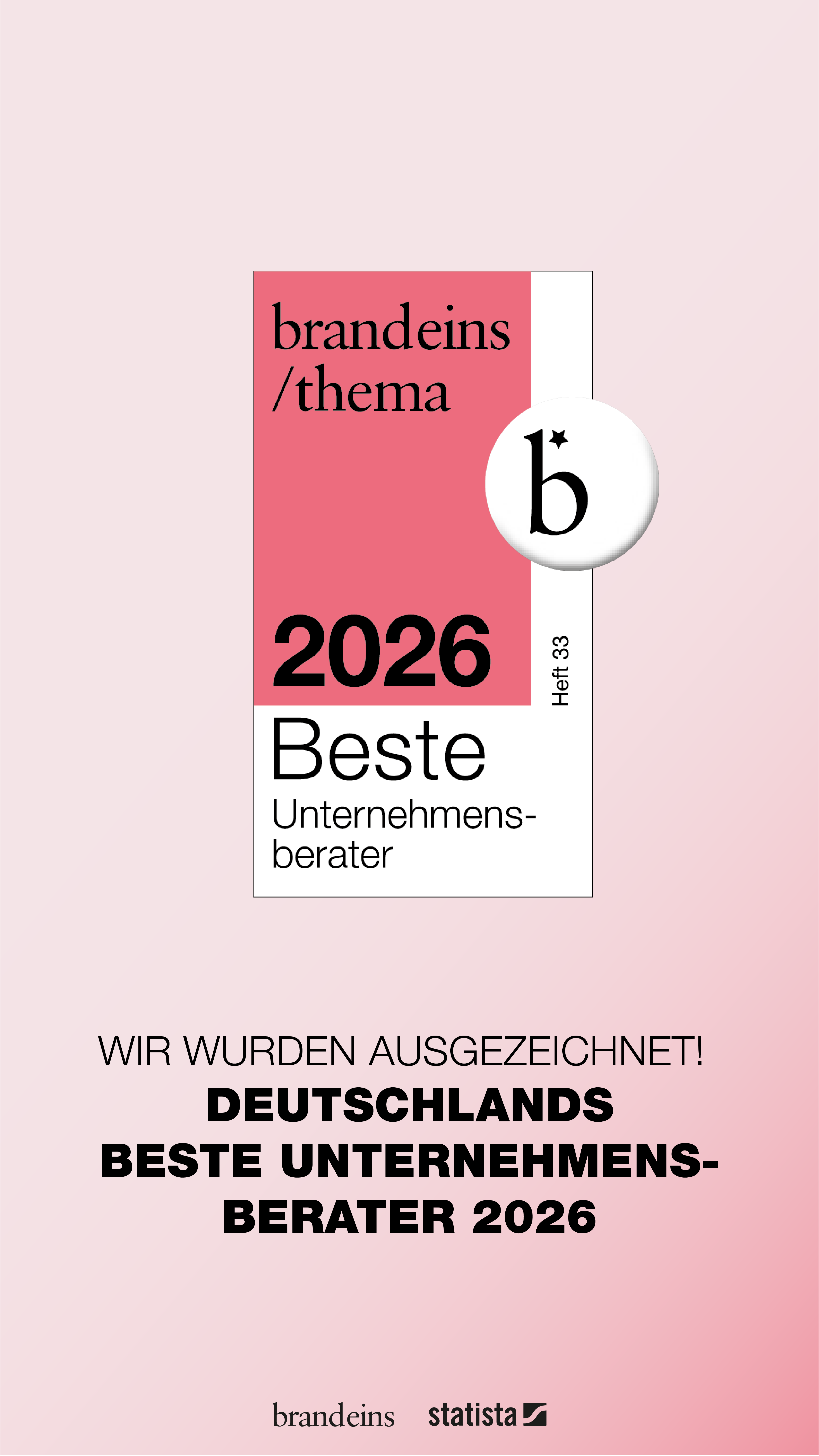 Umso mehr freuen wir uns über die Auszeichnung in der brand eins / Statista Studie „Beste Berater 2026"