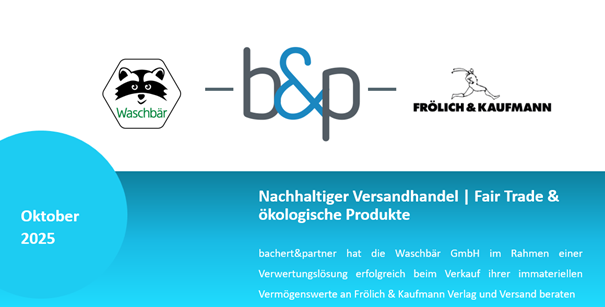 Unser besonderer Dank gilt allen Beteiligten für die vertrauensvolle und erfolgreiche Zusammenarbeit – insbesondere der Anwaltskanzlei Schleich & Partner mit Herrn Dr. Thorsten Schleich und Herrn Stefan Munk, der Anwaltskanzlei Schultze & Braun mit Herrn Dr. Dirk Pehl sowie der Geschäftsführung der Waschbär GmbH, Frau Katharina Hupfer und Herrn Daniel Kruschina. Seitens bachert&partner waren Alexander Becker und Lennard Swan beratend tätig.